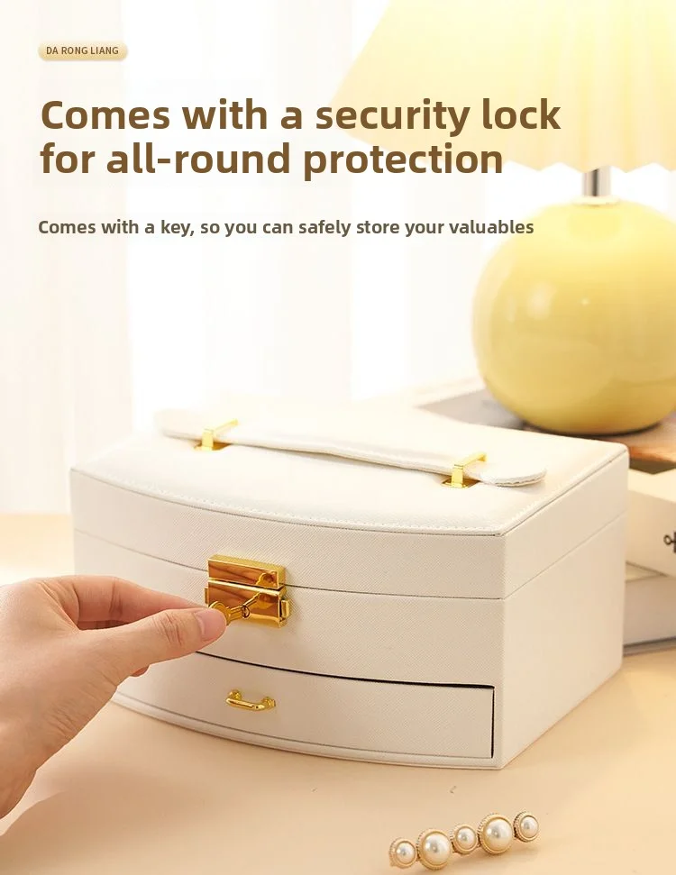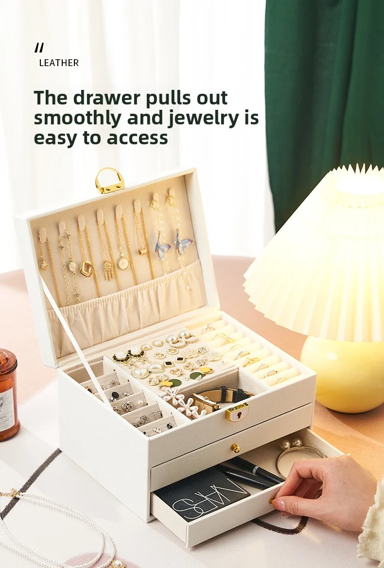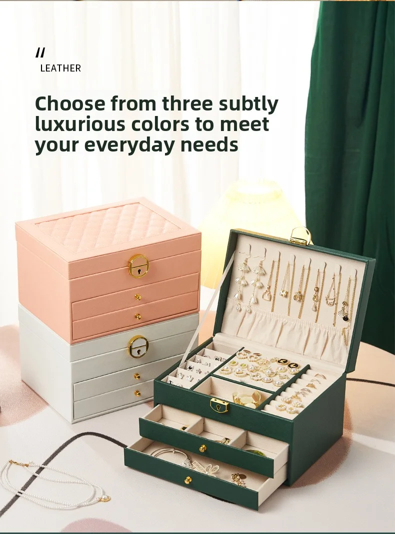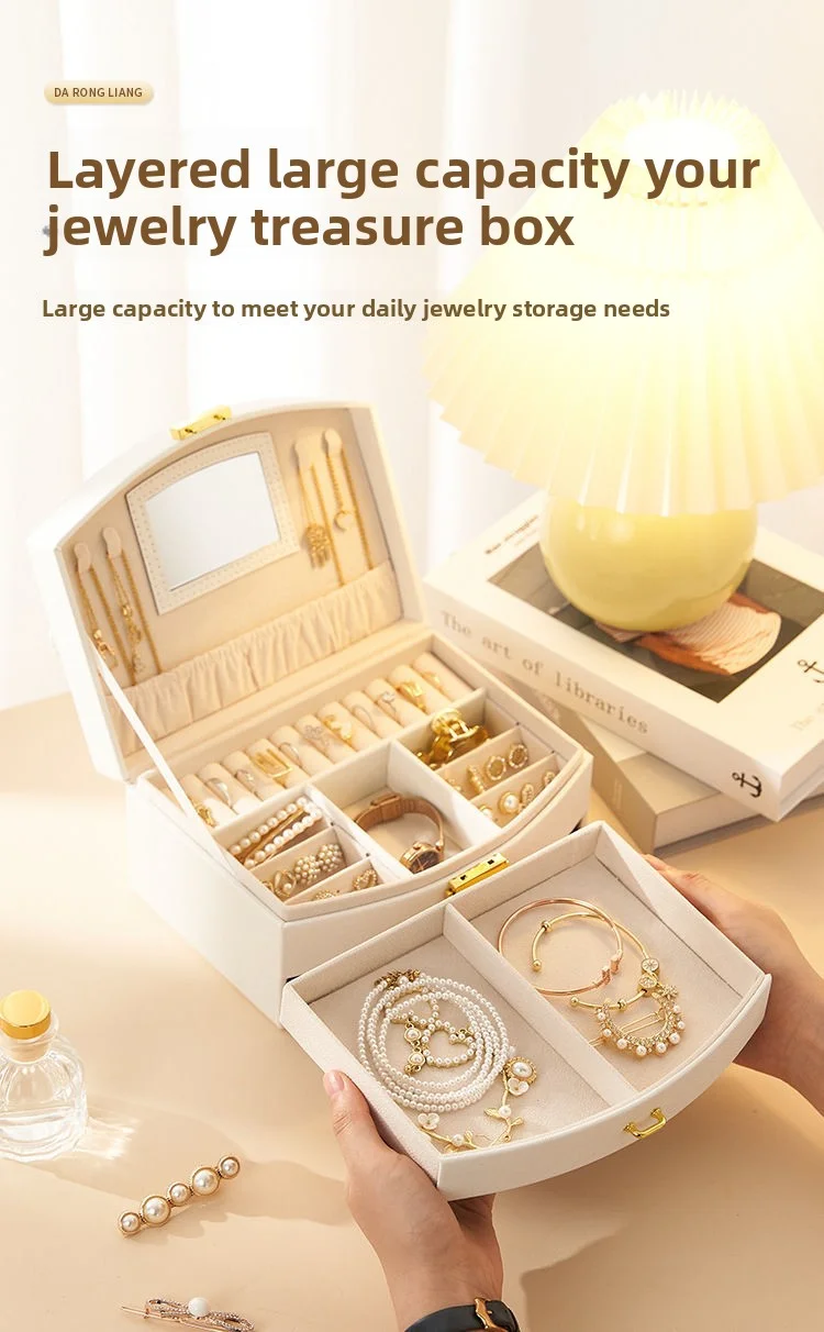 Boîte de rangement de bijoux en cuir PU de grande capacité.