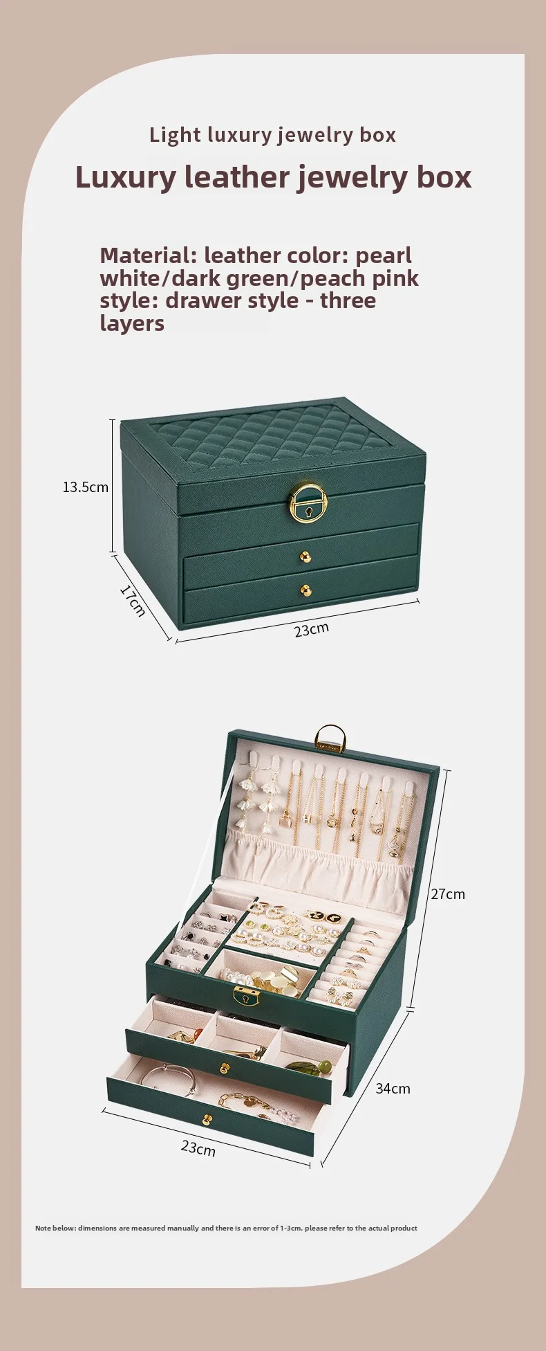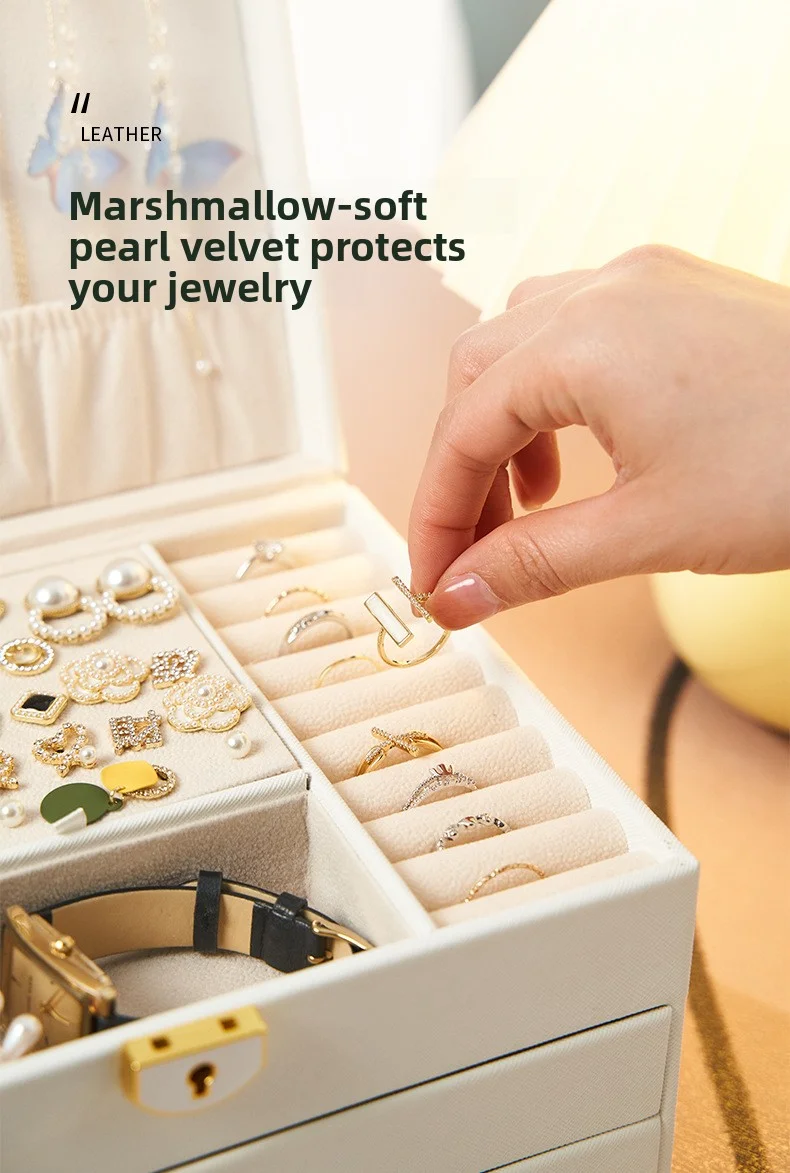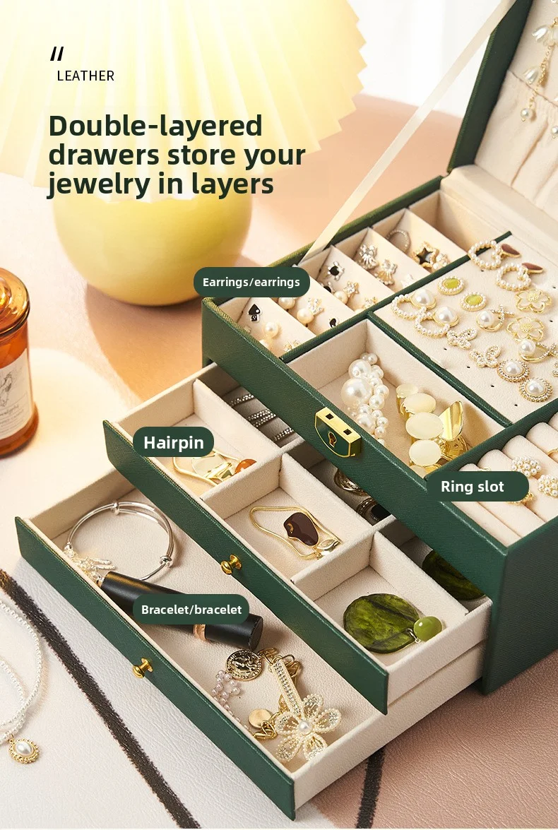 Boîte de rangement de bijoux en cuir PU de grande capacité.